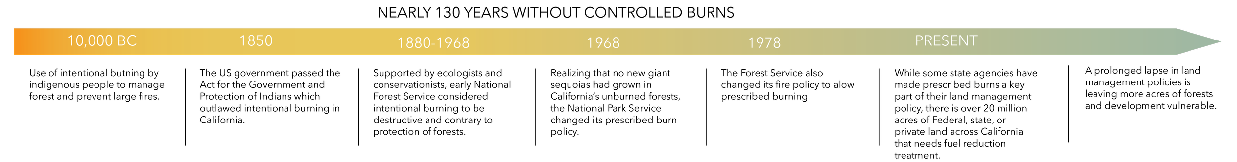 burns, firebreaks between development and wilderness, modernization of power lines, decentralization of utilities, and wildfire-informed urban planning.