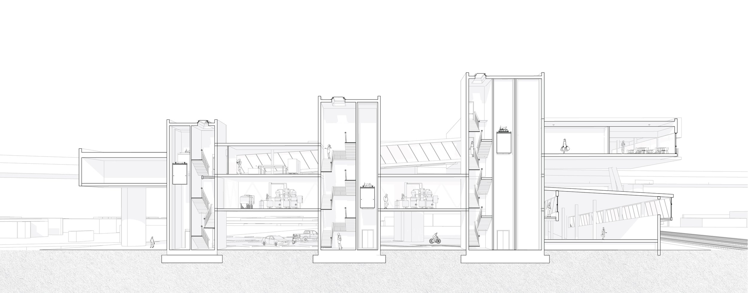 The site at 2649 E Washington Boulevard, Los Angeles lies in an industrial area bordered by key infrastructural elements—the Los Angeles River, an elevated train bridge, and a prominent power transmission tower nearby. These features strongly influence the architectural approach: the river and bridge define visual and spatial boundaries, introduce noise and vibration factors, and inspire structural expression, while the power tower imposes clear spatial and safety constraints on massing and orientation. In response, design strategies emphasize robust materials, careful site zoning, and views that engage with these infrastructural landmarks, transforming industrial limitations into a dynamic architectural dialogue between landscape, infrastructure, and built form.